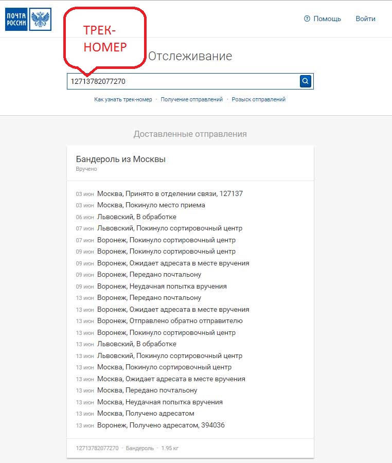 Ответ: Чтобы узнать, где находится ваша посылка или письмо, введите трек-номер на сайте Почты России www.pochta.ru/tracking