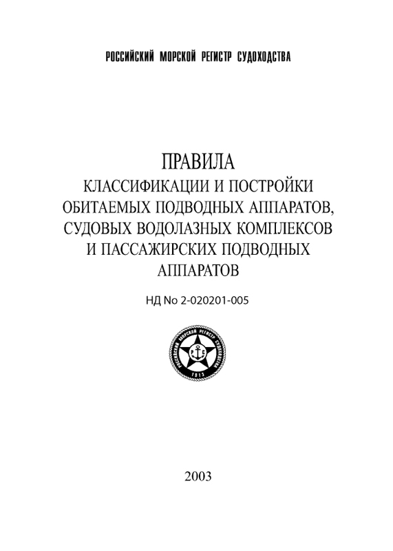 Правила классификации и постройки обитаемых подводных аппаратов, судовых водолазных комплексов и пассажирских подводных аппаратов утверждены в соответствии с действующим положением и вступают в силу с 1 января 2004 г.