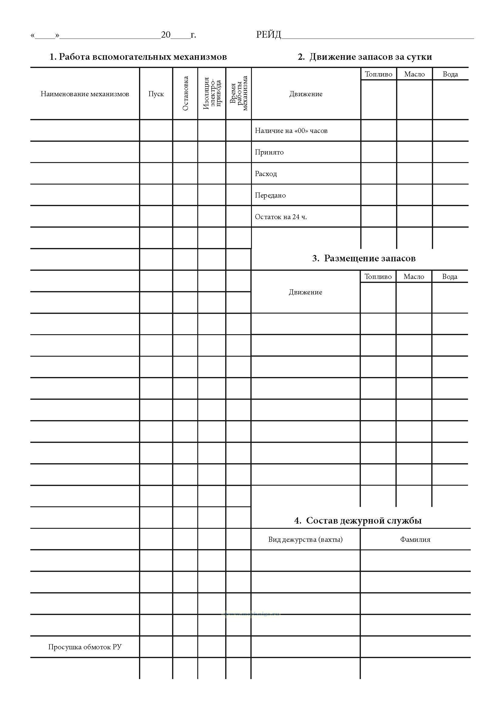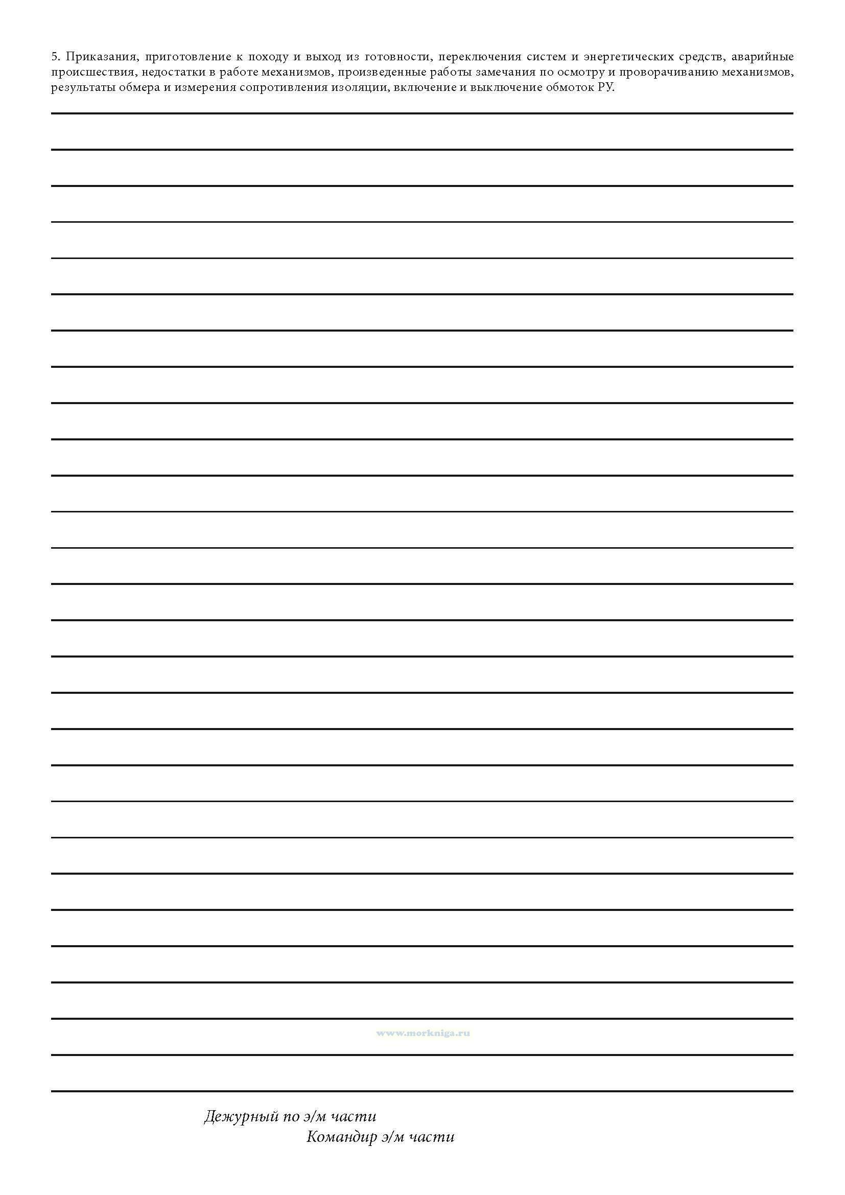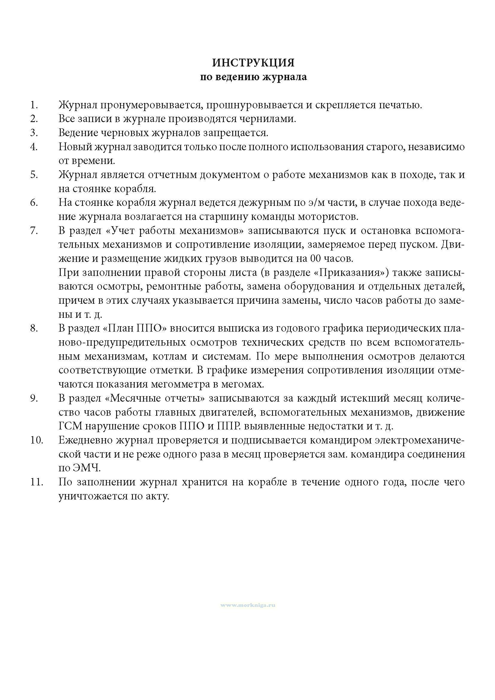 6. На стоянке корабля журнал ведется дежурным по э/м части, в случае похода ведение журнала возлагается на старшину команды мотористов.