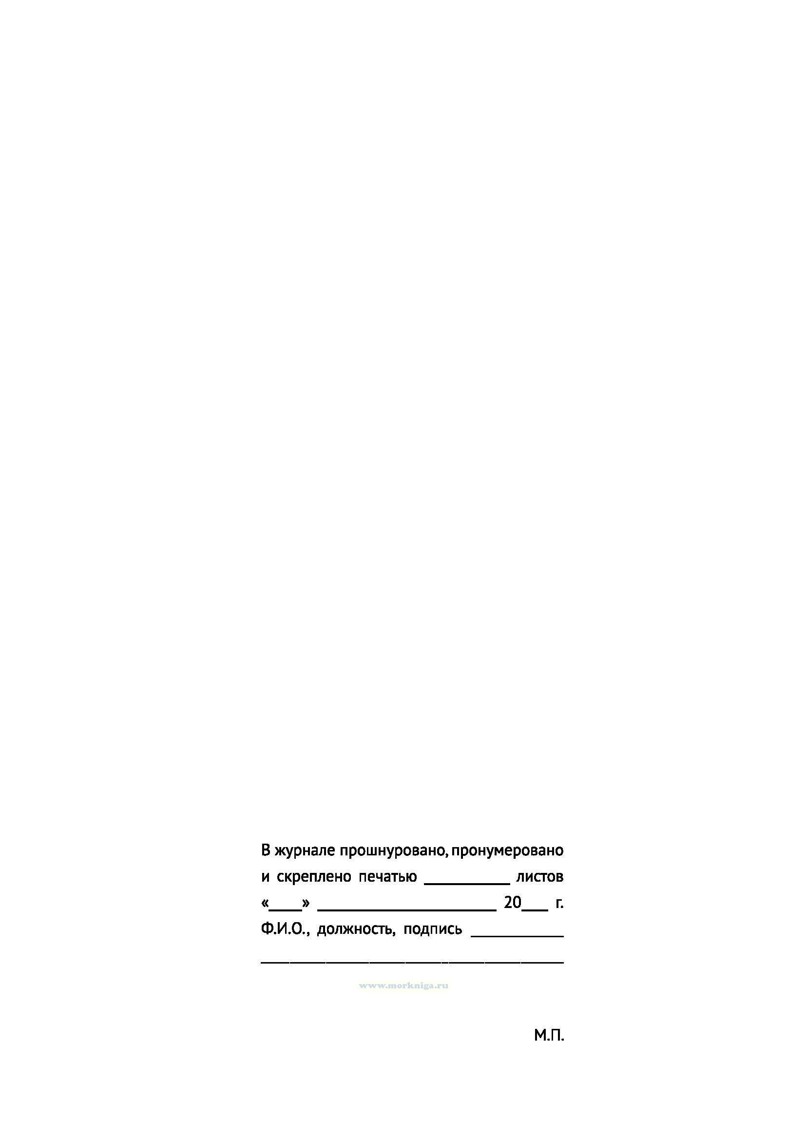 1. Журнал пронумеровывается, прошнуровывается и скрепляется печатью.