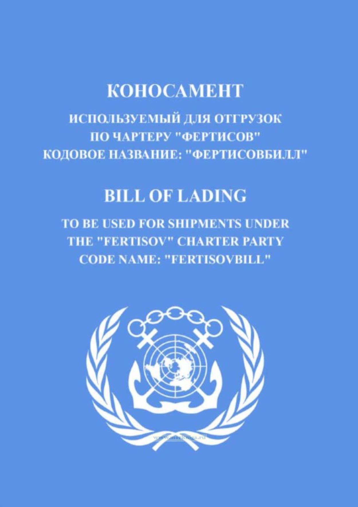 Коносамент, используемый для отгрузок по чартеру "Фертисов". Кодовое название: "Фертисовбилл"/Bill of Lading to be used for Shipments Under the "Fertisov" Charter Party. Code Name: "Fertisovbill"