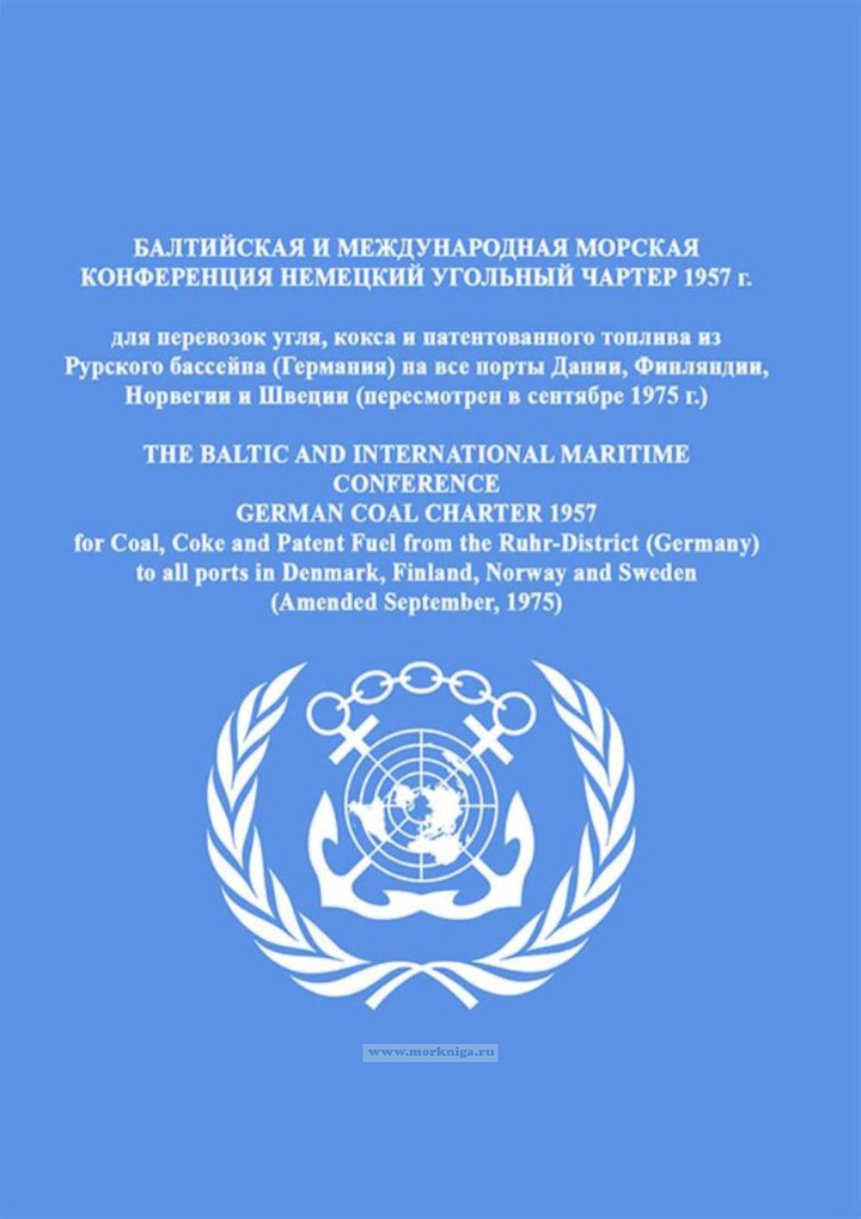 Немецкий угольный чартер, рекомендованный БИМКО для перевозок угля, кокса и патентованного топлива из Рурского бассейна (Германия) на все порты Дании, Финляндии, Норвегии и Швеции, 1957 г. включен в сборник Проформы чартеров и коносаментов. Книга 2.