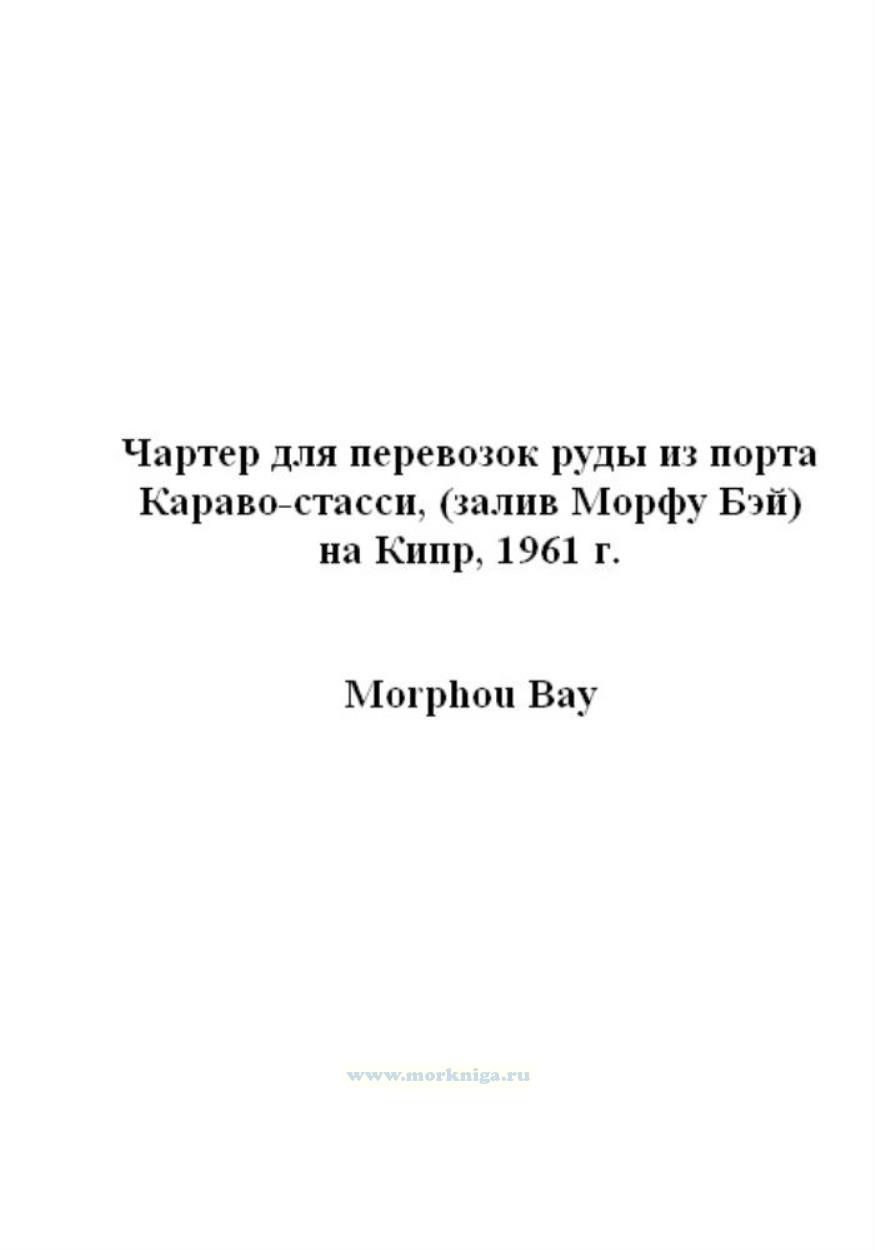 Чартер для перевозок руды из порта Караво-стасси, (залив Морфу Бэй) на Кипр, 1961 г. включен в сборник Проформы чартеров и коносаментов. Книга 2.