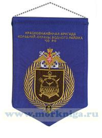 Вымпел Краснознаменная бригада кораблей охраны водного района ЧФ РФ изготовлен из атласного материала. Размер вымпела: ширина 16 см высота 23 см Изготовлен частным мастером в г. Севастополе