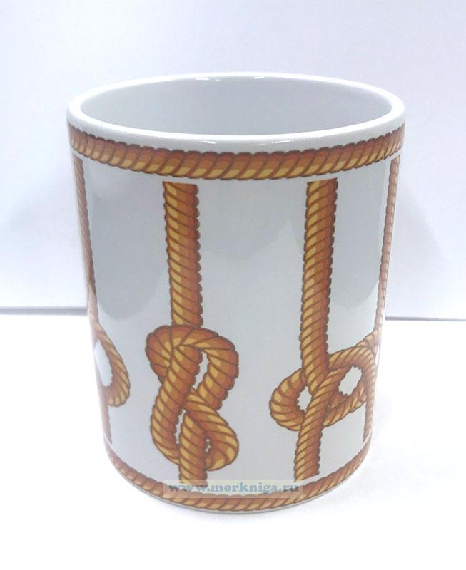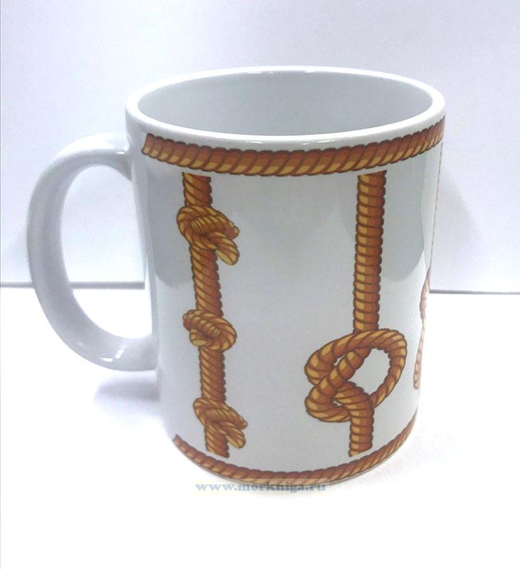 На кружке нанесено изображение морских узлов и фирменная надпись «Моркнига».