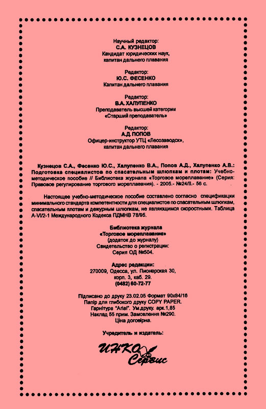 Настоящее учебно-методическое пособие составлено согласно спецификации минимального стандарта компетентности для специалистов по спасательным шлюпкам, спасательным плотам и дежурным шлюпкам, не являющимся скоростными.