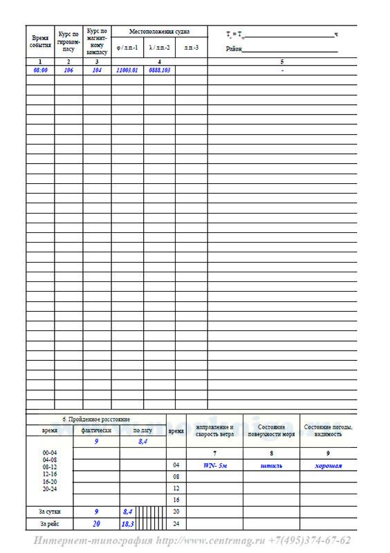 8. Судовой журнал заполняется в течение вахты в момент совершения события или сразу после него.