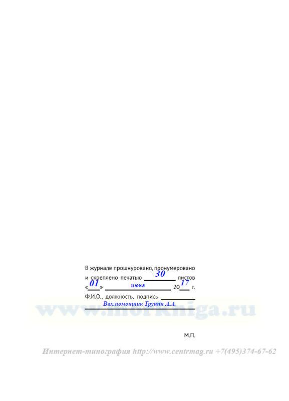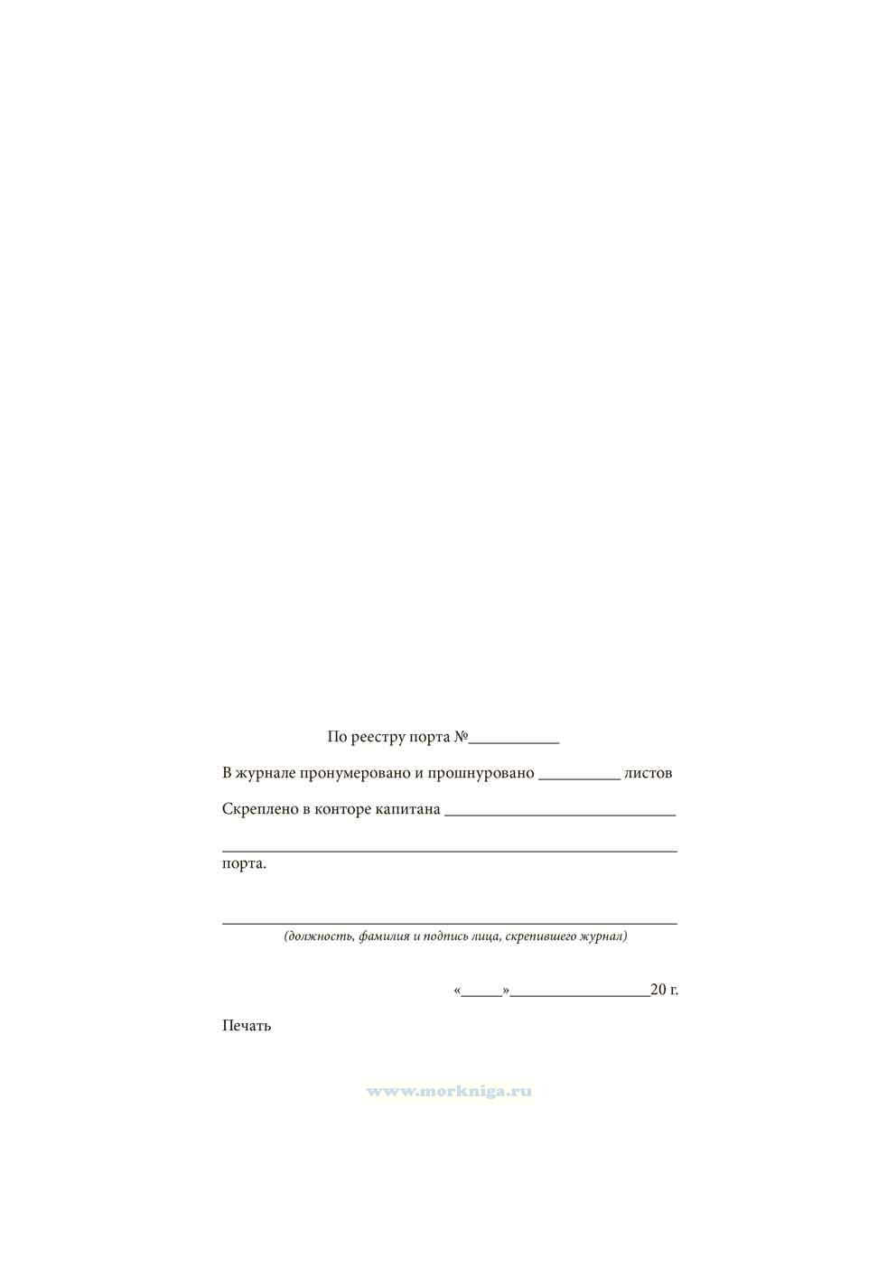 3. Судовой журнал подлежит учету капитаном морского порта. Все листы в судовом журнале должны быть пронумерованы, прошнурованы и скреплены на последней странице печатью капитана морского порта Российской Федерации.