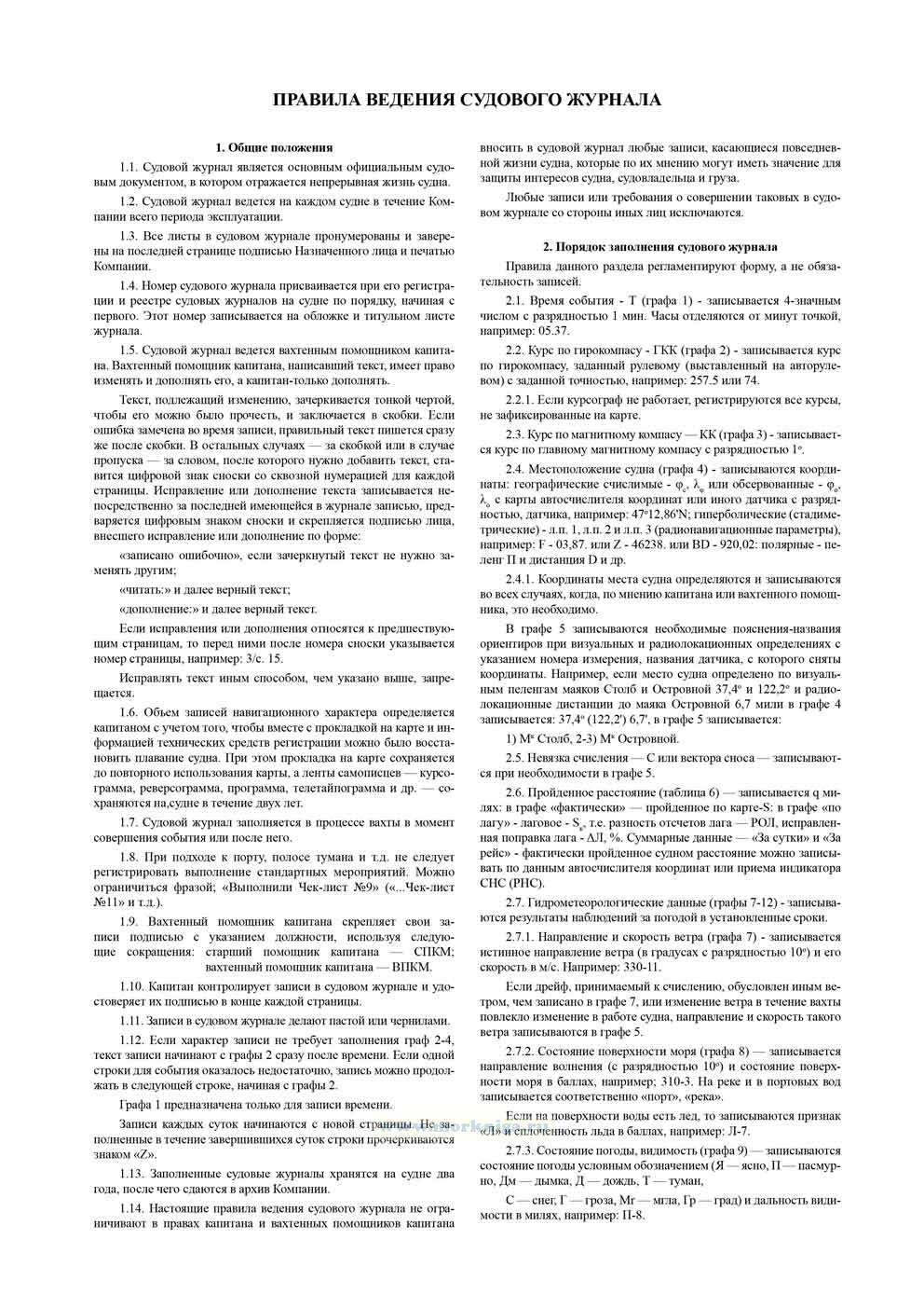 ПРАВИЛА ВЕДЕНИЯ СУДОВОГО ЖУРНАЛА