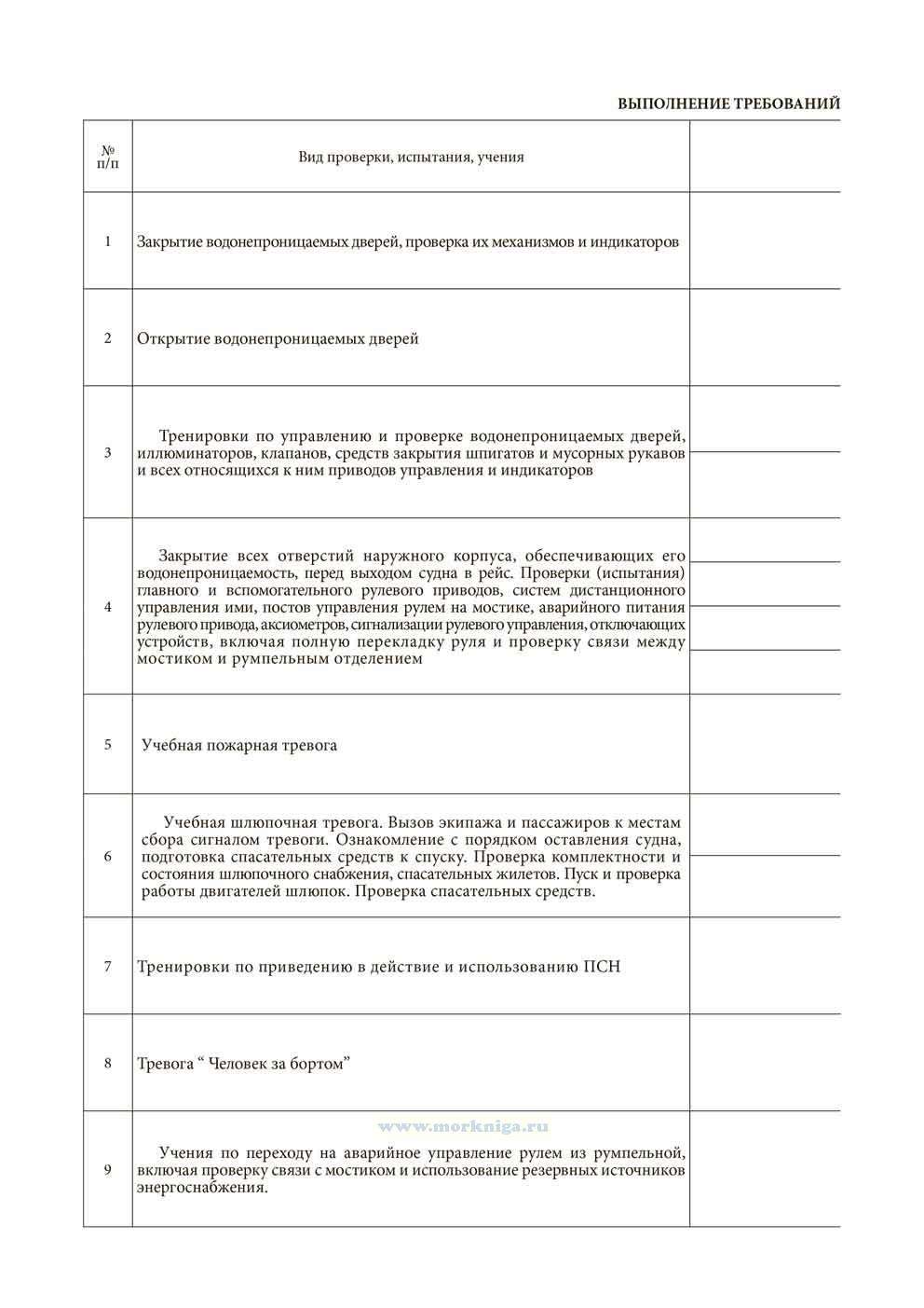 35. В строке 4 Таблицы в графе "Дата (время) проведения, подпись" записываются дата и время закрытия перед выходом судна из порта всех отверстий наружного контура, которые в рейсе должны быть закрыты, и/или дата и время проверки приводов, систем и устройств, которые должны быть проверены перед выходом судна в рейс, и ставится подпись старшего помощника капитана.
