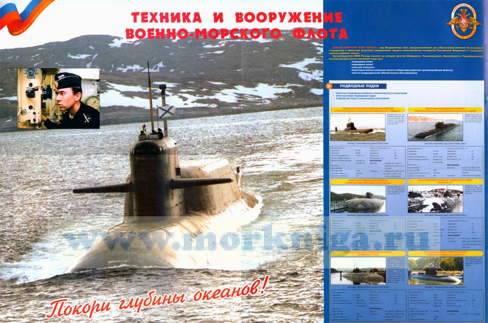 На плакате Техника и вооружение "Подводные лодки" изображено 7 фотографий с подробным описанием: