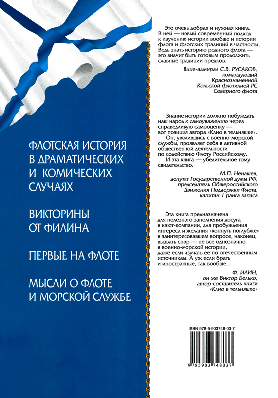 Систематизированные знания по истории флота поданы в игровой форме. Книга предназначена для юношества, в помощь офицерам отделов воспитательной работы ВМФ, «для полезного заполнения досуга в кают-компании».
