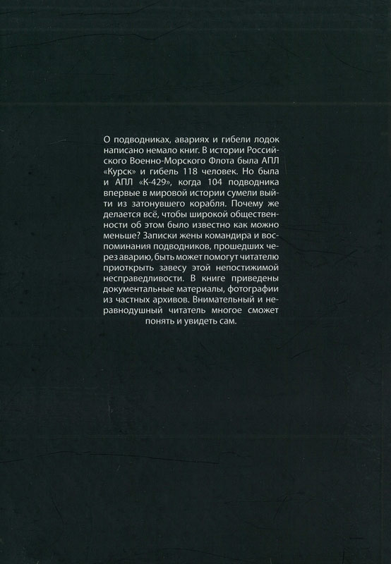 Записки жены командира и воспоминания подводников, прошедших через аварию, быть может помогут читателю приоткрыть завесу этой непостижимой несправедливости.