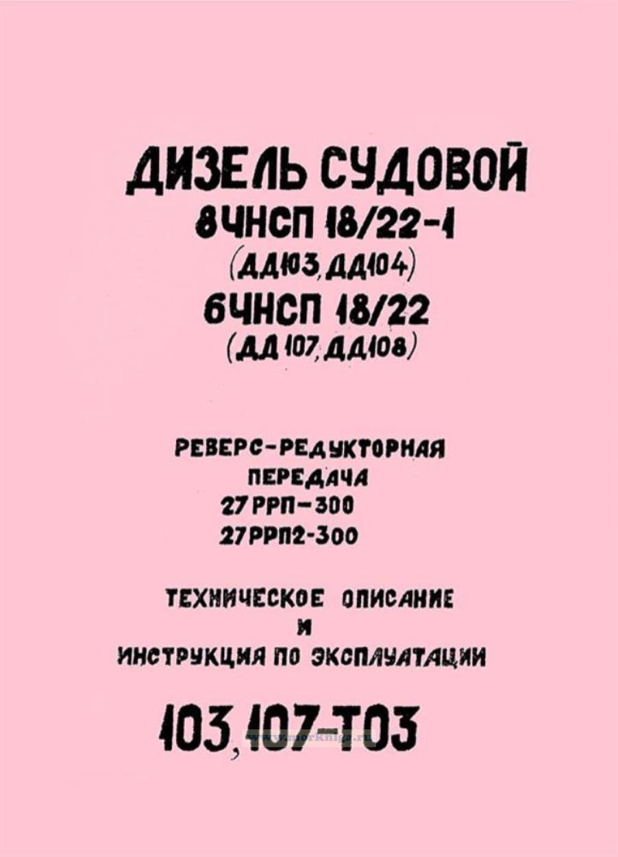 Дизель судовой 8 ЧСПН 18/22-1 (ДД103, ДД104), 6ЧСПН 18/22 (ДД107, ДД108). Реверс-редукторная передача 27 РРП-300, 27 РРП2-300. Техническое описание и инструкция