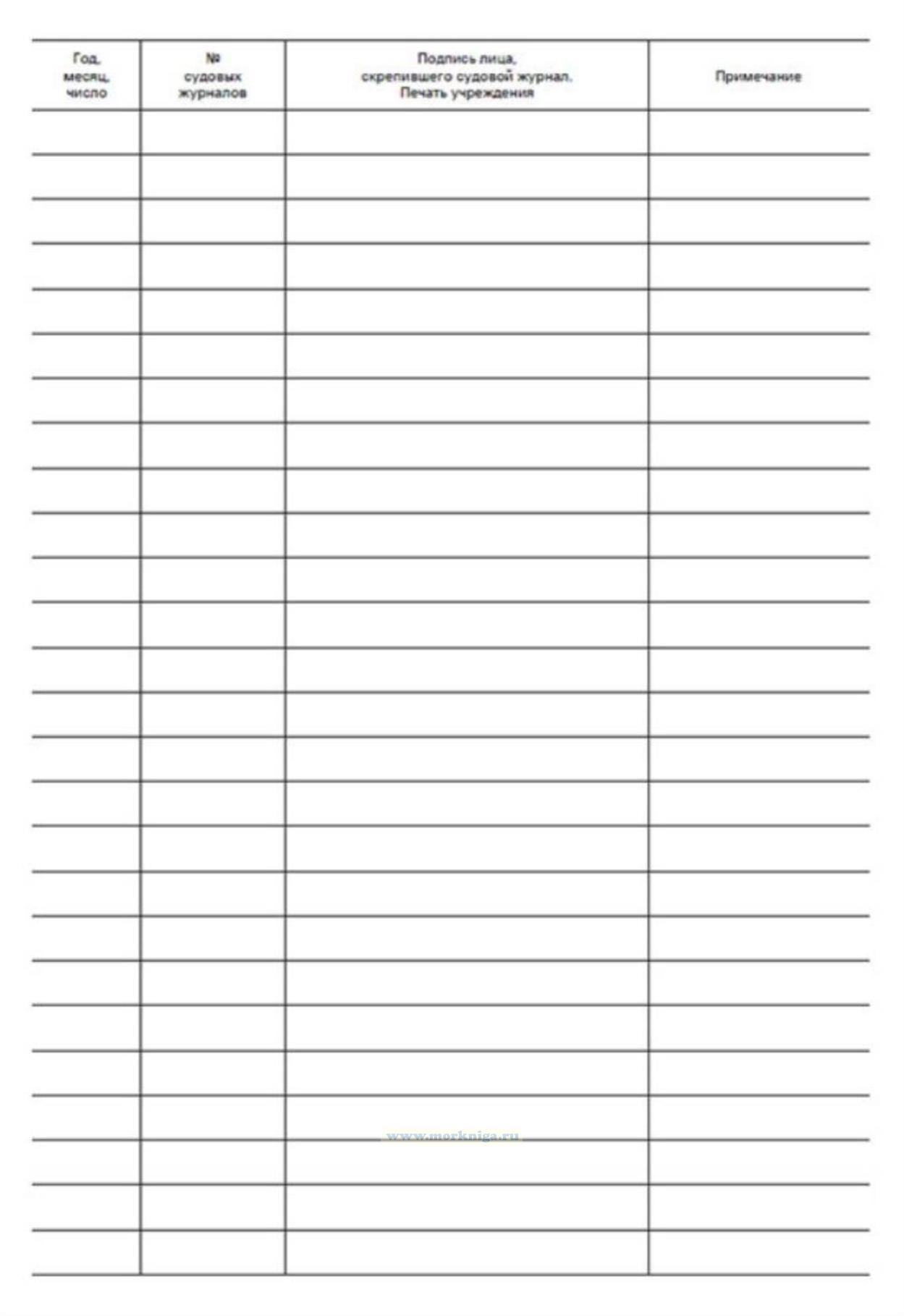 Реестр судовых журналов (форма Э-53) имеет графы: