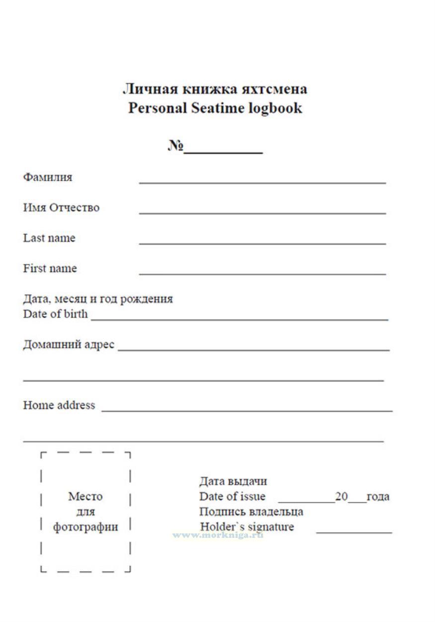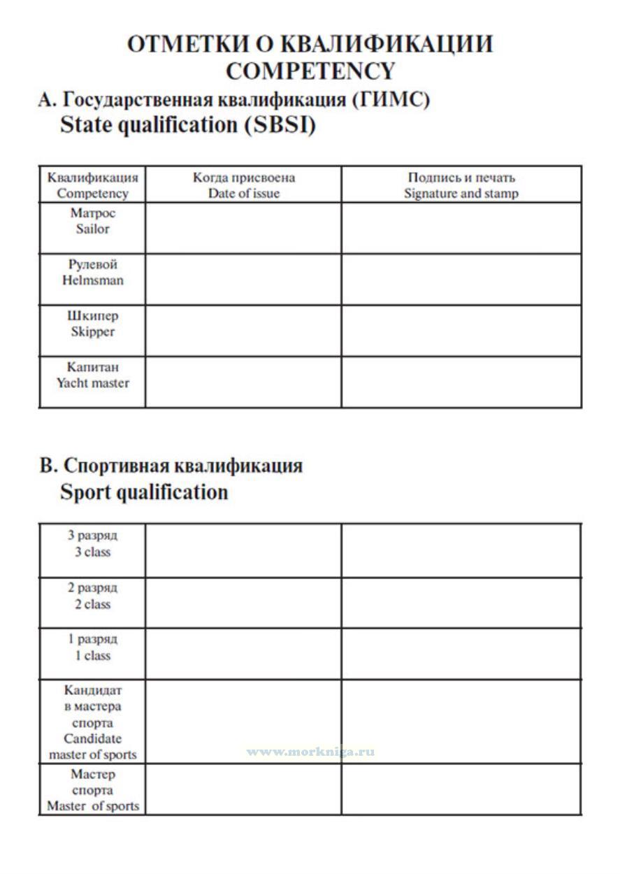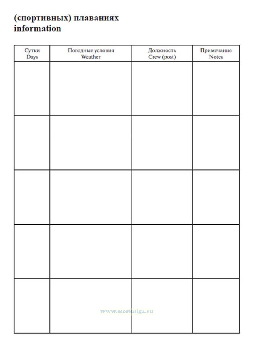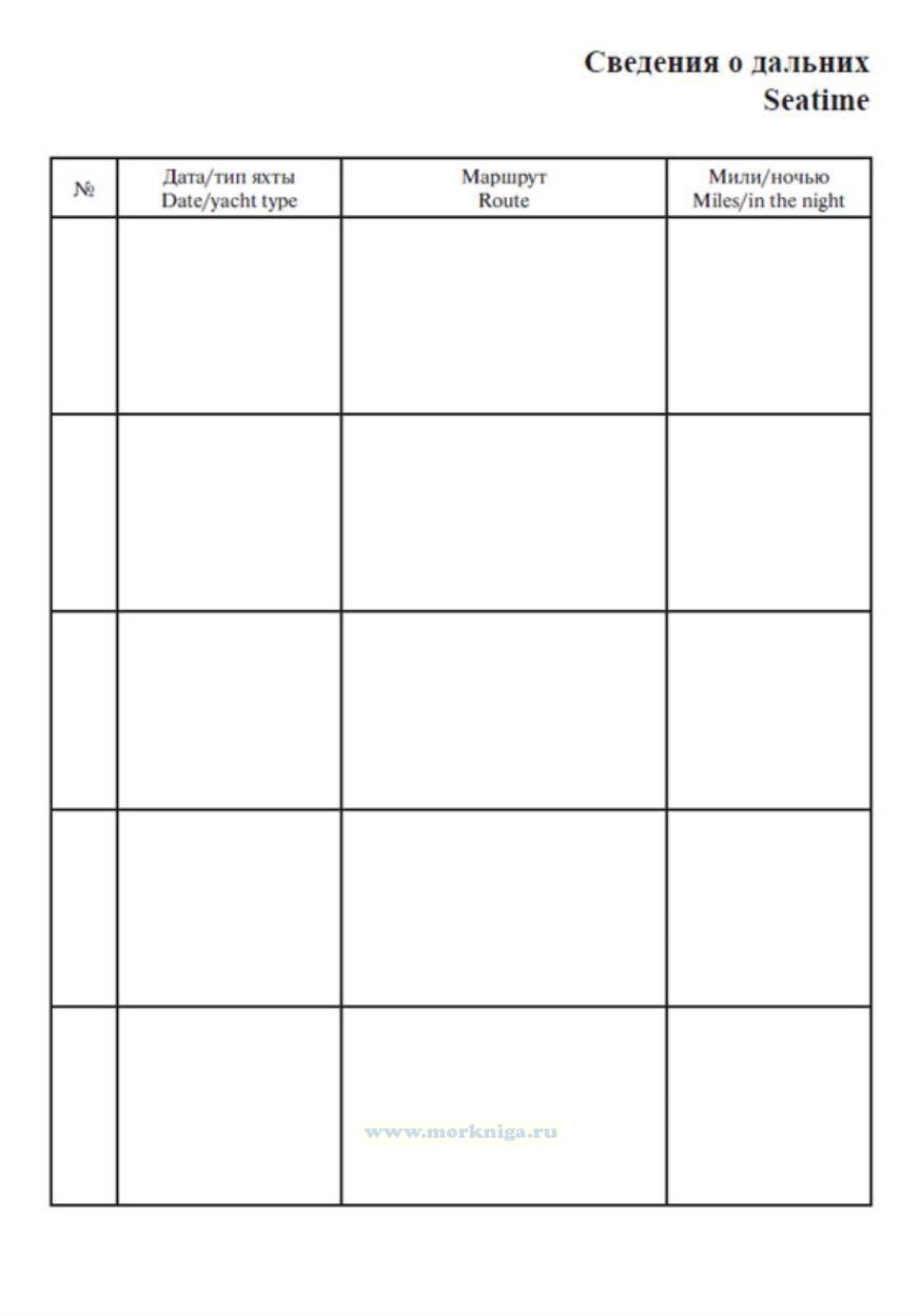 В личную книжку яхтсмена. Personal seatime logbook заносят следующие сведения: