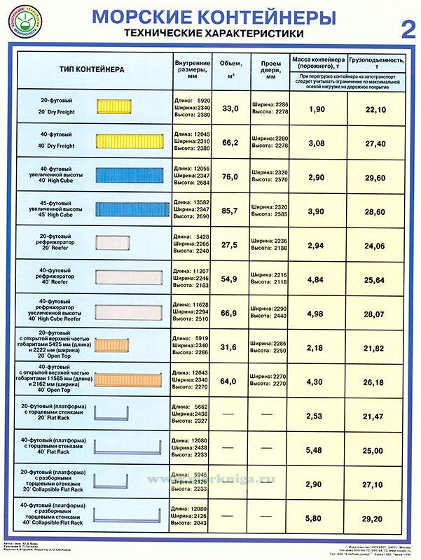 2. Морские контейнеры. Технические характеристики (таблица)