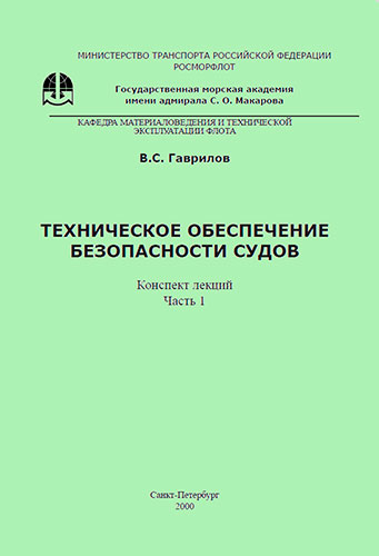 Конспект лекций переработан и дополнен профессором Гавриловым B.C. на основе текстов лекций на тему "Техническое обеспечение безопасности судов (ТОБС)" (ч. I), подготовленных в 1993 г. к.т.н. доцентом Гальпериным М.М. Рекомендован к изданию на заседании кафедры материаловедения и ТЭФ. Протокол № 11 от 14 марта 2000 г.