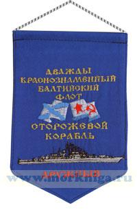 Вымпел Сторожевой корабль Бдительный ДКБФ изготовлен из атласного материала. Размер вымпела: ширина 16 см высота 23 см Изготовлен частным мастером в г. Севастополе