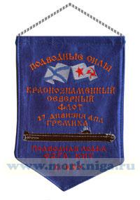 Вымпел Крейсерская атомная подводная лодка К-10 КСФ изготовлен из атласного материала. Размер вымпела: ширина 16 см высота 23 см Изготовлен частным мастером в г. Севастополе