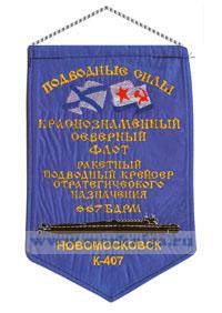 Вымпел РПКСН 667 БДРМ Новомосковск К-407 КСФ изготовлен из атласного материала с машинной вышивкой.
