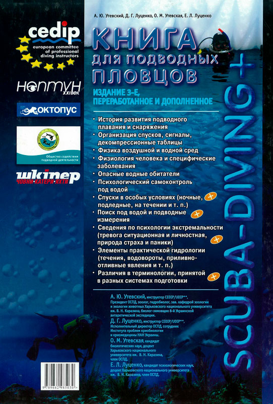 Книга снабжена обширным справочным материалом — визуальные сигналы, полные таблицы декомпрессии и лечебной рекомпрессии, адреса действующих на территории Украины барокамер, основные морские узлы.