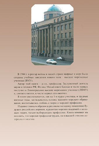 Автор этой книги - д.т.н., профессор, Заслуженный деятель науки и техники РФ, Феликс Михайлович Кацман в числе первых поступил в Ленинградское высшее мореходное училище (ЛВМУ) и, соответственно, в числе первых его окончил.