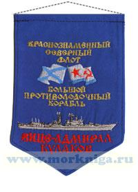 Вымпел Большой противолодочный корабль Вице-Адмирал Кулаков КСФ изготовлен из атласного материала. Размер вымпела: ширина 16 см высота 23 см Изготовлен частным мастером в г. Севастополе
