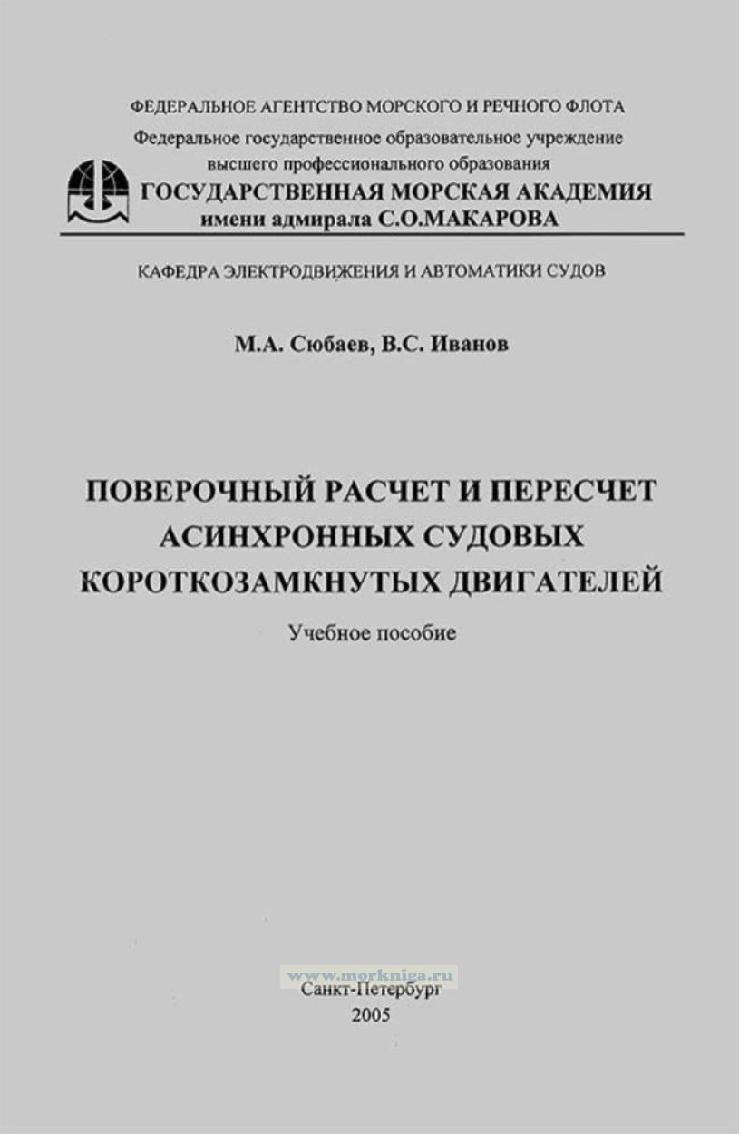 В настоящем учебном пособии рассматриваются вопросы электрического ремонта судовых асинхронных короткозамкнутых двигателей с сохранением номинальных параметров и рекомендации по их изменению. Приводятся методики поверочных расчетов асинхронных двигателей с обмотками из круглого провода, а также методики пересчета асинхронных двигателей на другие напряжения, частоту вращения и частоту питающего тока.