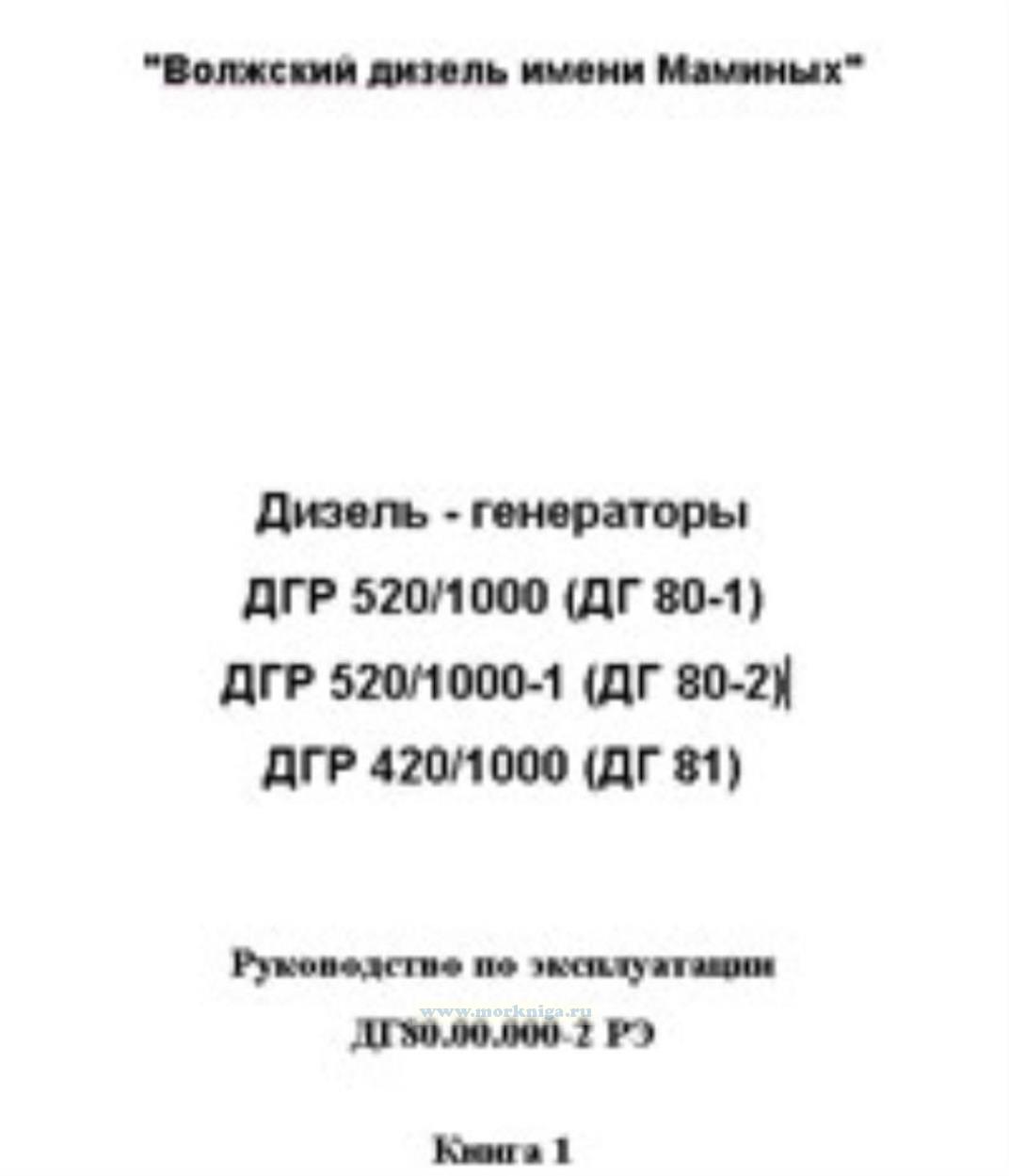 Дизель - генераторы ДГР 520/1000 ДГР 520/1000-1 ДГР 420/1000 Руководство по эксплуатации. Книга 1