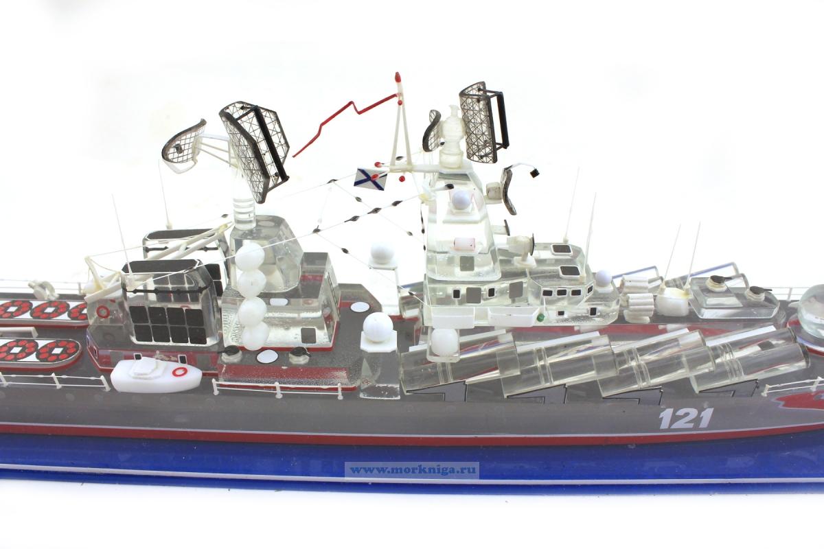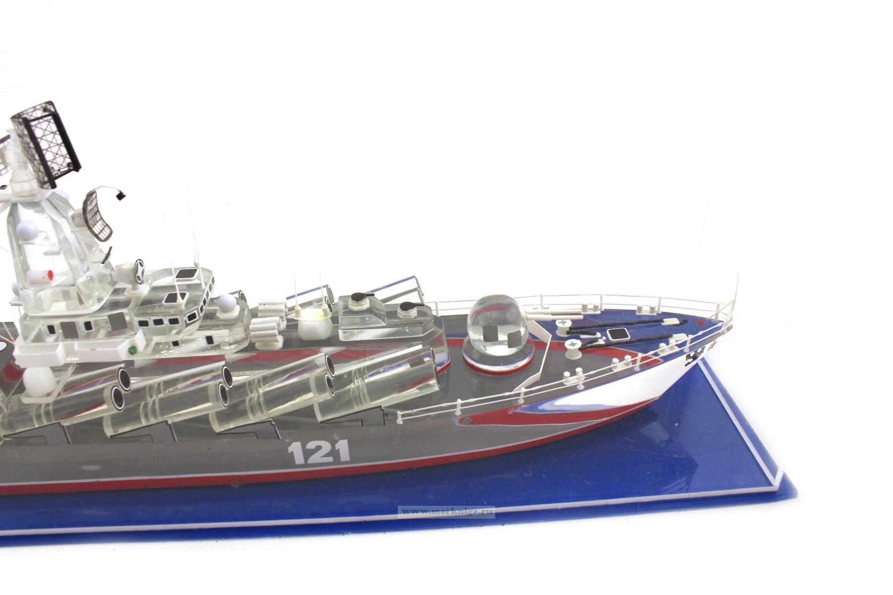 Модель ракетного крейсера "Москва" выполнена из оргстекла