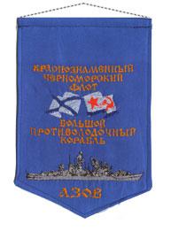 Вымпел Большой противолодочный корабль Азов КЧФ изготовлен из атласа. Размер вымпела: ширина 16 см высота 23 см Изготовлен частным мастером в г. Севастополе
