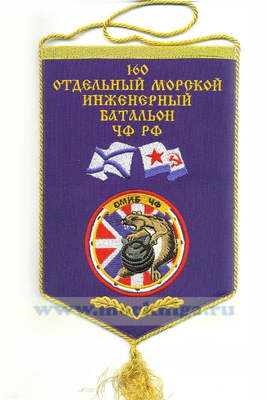 Вымпел "160 отдельный морской инженерный батальон ЧФ РФ" изготовлен синей ткани. Размер вымпела: ширина 17 см высота 24 см
