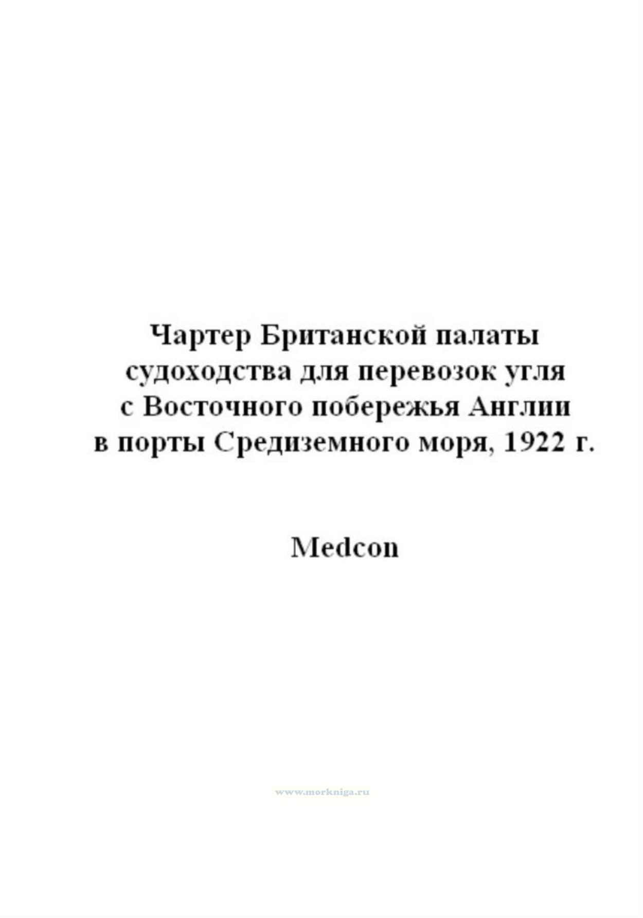 Чартер Британской палаты судоходства для перевозок угля с Восточного побережья Англии в порты Средиземного моря, 1922 г._Medcon
