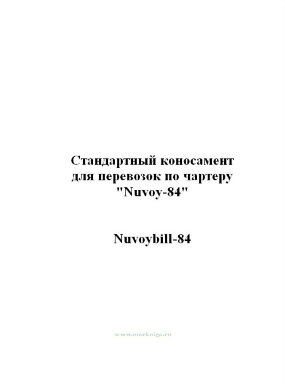 Стандартный коносамент для перевозок по чартеру "Nuvoy-84" включен в сборник Проформы чартеров и коносаментов. Книга 5.