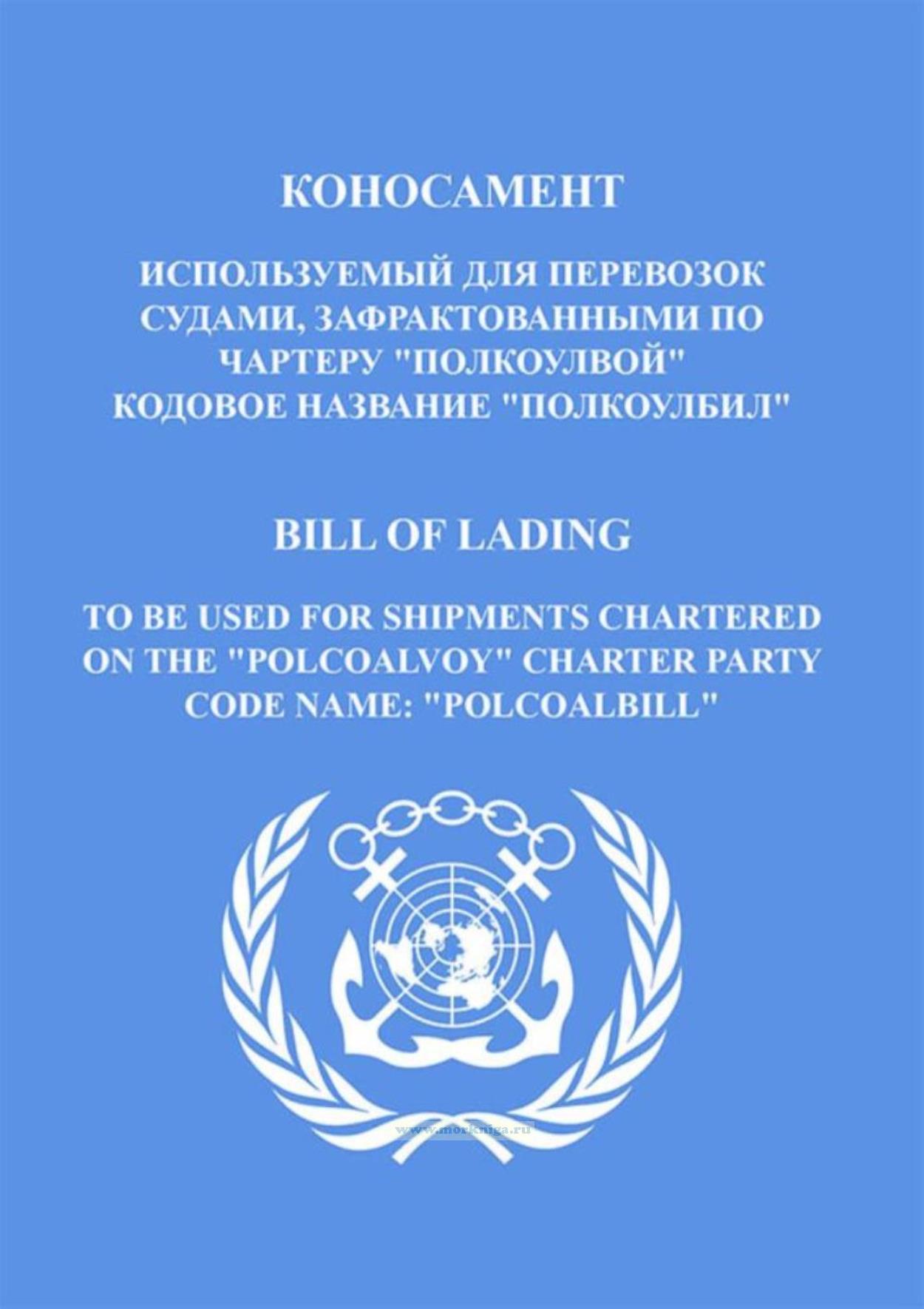 Коносамент, используемый для перевозок судами, зафрактованными по чартеру "ПОЛКОУЛВОЙ". Кодовое название "ПОЛКОУЛБИЛ"/ Bill of Lading to be Used for Shipments Chartered on the "POLCOALVOY" Charter Party. Code Name: "POLCOALBILL", 1997