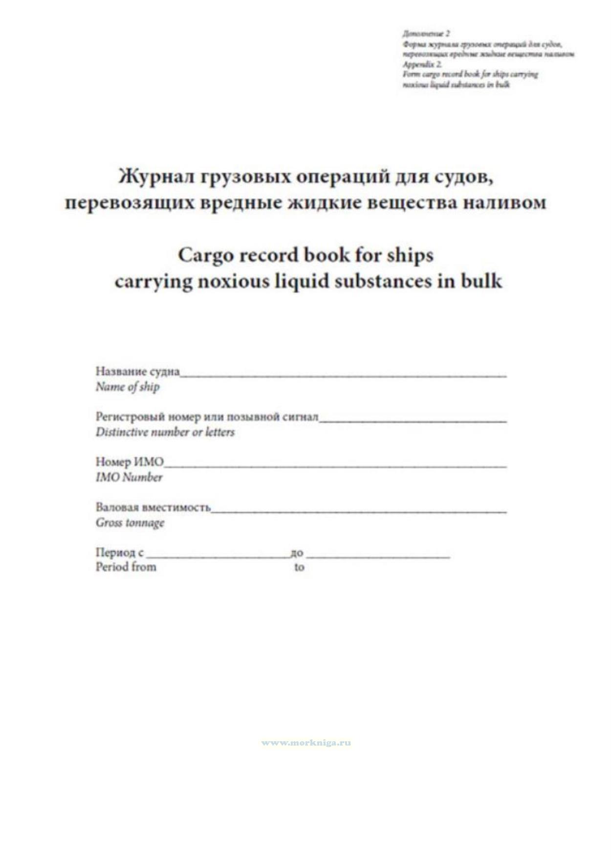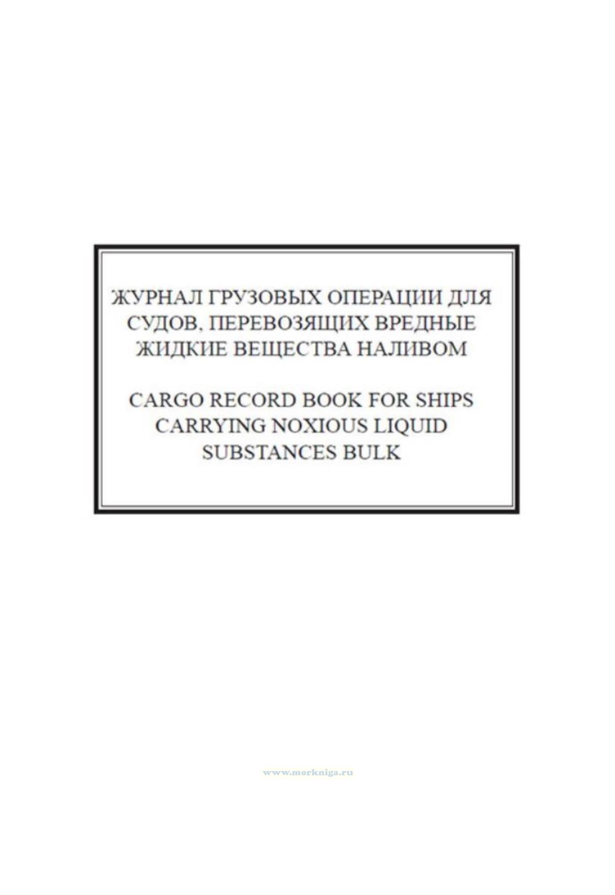 Каждое судно, перевозящее вредные жидкие вещества наливом, снабжается журналом грузовых операций для регистрации соответствующих балластно-грузовых операций