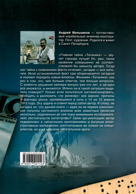 Только если попытаться систематизировать, обобщить и разложить "по ранжиру" все версии, причины и факторы риска, проявившиеся в ночь с 14 на 15 апреля 1912 года. Эту задачу и ставил перед собой автор.