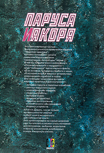 Называется она "Паруса и якоря" и продолжает тему первой книги этой серии - Морские узлы, фалы, лини..., написанную профессиональным моряком, боцманом с 32-летним стажем, севастопольцем Павлом Бывальцевым.
