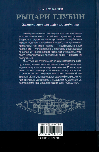 Книга уникальна по насыщенности сведениями из истории становления российского подводного флота. Впервые в одном издании прослежены судьбы всех первых подводных кораблей и людей, овладевших непривычной техникой. Автор - профессиональный подводник - увлекательно и подробно рассказывает об освоении нового класса кораблей, об эволюции боевого использования подводных лодок и средств их вооружения. Многолетние архивные изыскания позволили автору, кроме детального повествования о действиях подводных лодок на всех морских театрах России, привести имена пионеров освоения "гидрокосмоса": в обстоятельном мартирологе представлено более 150 имен. Книгу сопровождают редкие фотографии, копии архивных материалов и выдержки из документов, долгое время хранившихся под грифом "Секретно".