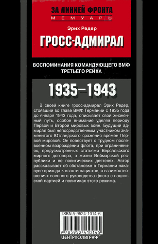 Автор книги - гросс-адмирал Эрих Редер, стоявший во главе ВМФ Германии с января 1935 года до января 1943-го. Описывая свой жизненный путь, он особое внимание уделяет периоду Первой и Второй мировых войн.