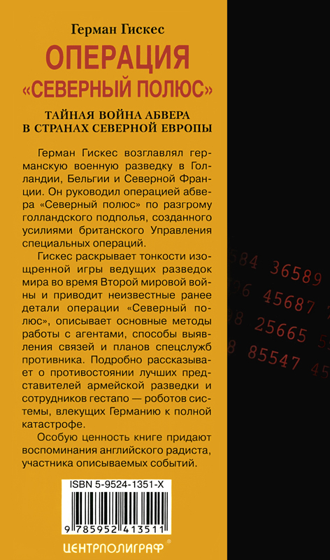 Начальник военной разведки в Голландии, Бельгии и Северной Франции рассказывает о тайной войне, которую вели между собой во время Второй мировой спецслужбы Германии и Англии. Подробно описана операция "Северный полюс" и приведены сведения о трагических судьбах задействованных в ней агентов. Особую ценность книге придают воспоминания английского радиста, участника описываемых событий.