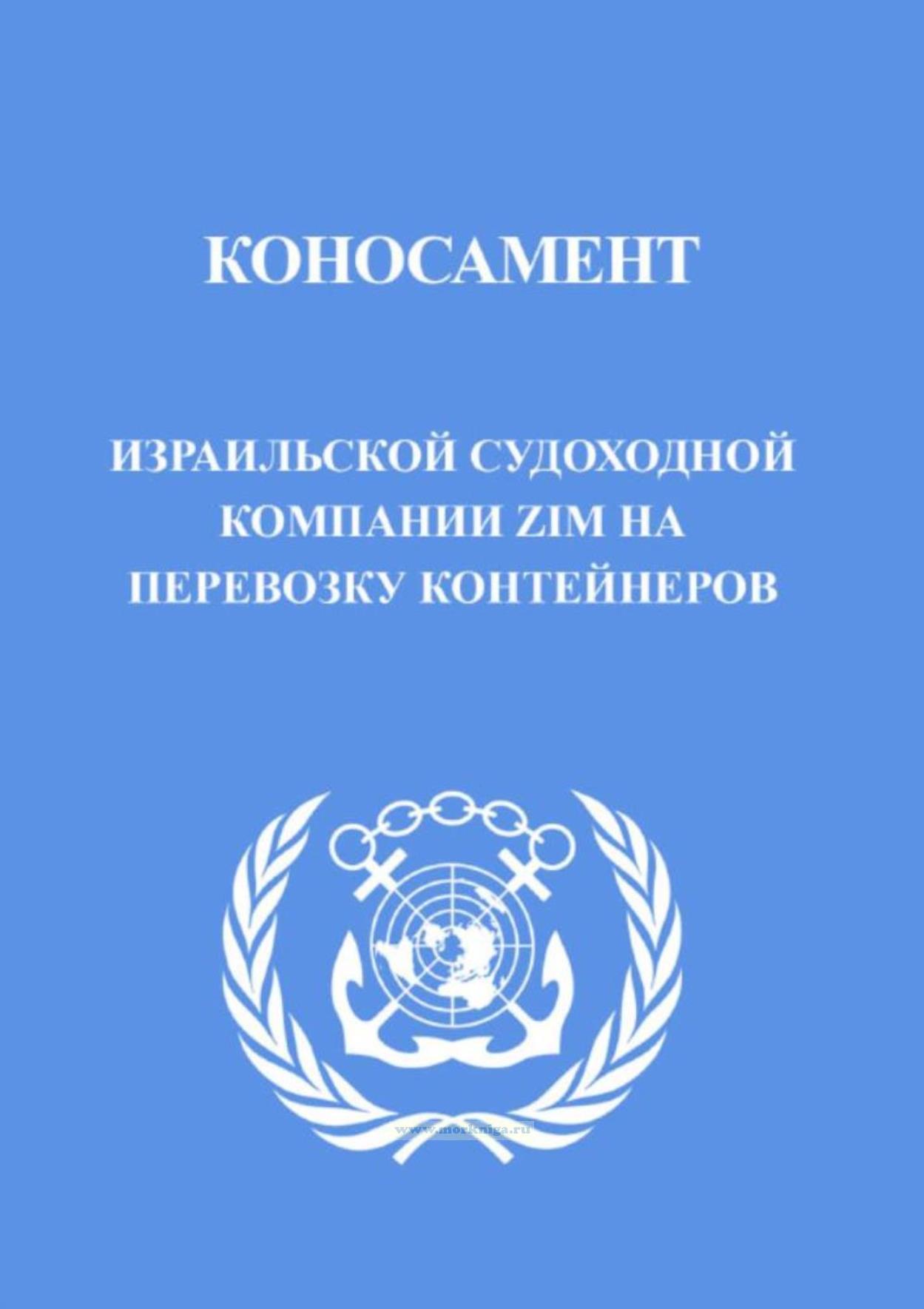Коносамент Израильской Судоходной Компании ZIM на перевозку контейнеров, 1996 г. включен в сборник Проформы чартеров и коносаментов. Книга 10.