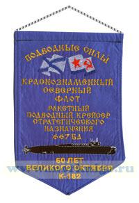Вымпел Ракетный противолодочный крейсер стратегического назначения 667БД 60 лет Великого Октября К-182 КСФ изготовлен из атласного материала.