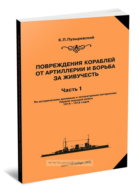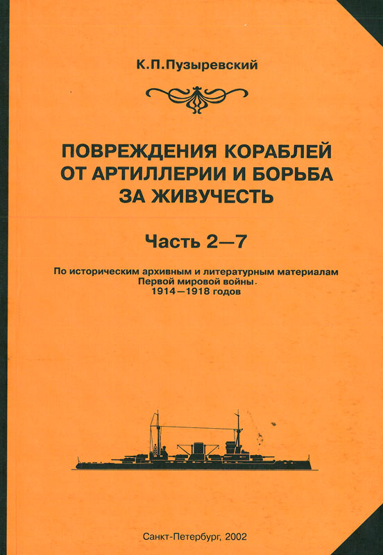 Основной текст печатается по изданию: Пузыревский К.П. Повреждения кораблей от артиллерии и борьба за живучесть. Л.: Государственное союзное издательство судостроительной промышленности, 1940, с незначительной стилистической правкой и устранением явных ошибок и опечаток.