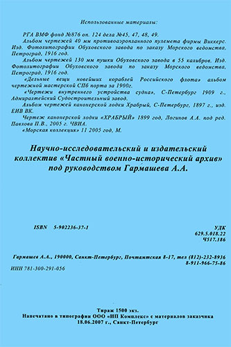 Заложенная на Новом Адмиралтействе 15.12.1894 г. канонерская лодка стала последним кораблем русского флота построенным на верфи по программе 1881 г. Являясь развитием типа "Отважный" канонерская лодка имела вдобавок к бронированию улучшенную мореходность и новую артиллерию. Корабль мог бы стать одним из лучших образцов "универсальной боевой единицы" своего времени, но отвратительное качество постройки и экспериментальные для русского флота котлы Никлосса стали приговором. Если флот потерял боевую единицу, то русская дипломатия наоборот: "Храбрый" осуществил самую долгую за всю историю мировой культуры "миротворческую операцию" без захода в родные воды. С 08.1899 года по 08.1906 года канонерская лодка находилась в составе международной миротворческой эскадры у о. Крит. Только необходимость капитального ремонта возвратила корабль на Балтику. Затем была I Мировая война. С первых минут "Великой войны" канонерка показала себя одним из самых полезных кораблей Императорского Балтийского флота. Поэтому командование не только "гоняло" корабль, но и постоянно заботилось о повышении его боеспособности. В 1915 году "Храбрый" перевооружили 105-мм трофейными орудиями с "Магдебурга". С этим вооружение канонерка участвовала в первом сражении в Рижском заливе. Однако трофейное вооружение вызывало ряд проблем и было недостаточно мощным. В связи с этим было принято решение установить новейшие 130-мм орудия Обуховского завода. Поставка которых для вооружения "Храброго" в Ревеле в 1916 году была проведена в ущерб готовности Черноморских линкоров. Одновременно на корабле провели модернизационный ремонт в ходе которого установили 40-мм зенитный пулемет системы Виккерса, приподняли на 900 мм боевую рубку и расширили ходовой мостик над ней, убрали грот мачту, отремонтировали машины корабля. Также было проведено множество мелких усовершенствований выполнявшихся по "месту". Вернувшись в боевой строй, канонерская лодка приняла успешное участие в Моозундском сражении. В данной работе приведен вид канонерской лодки на момент Моозундского сражения.
