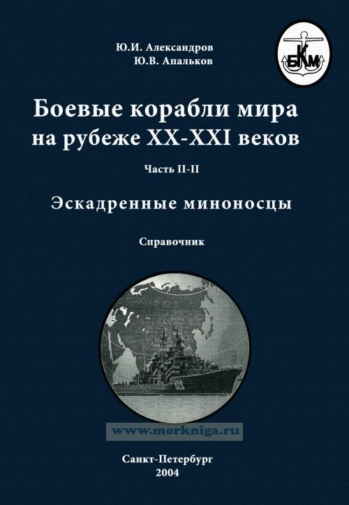 Справочник содержит сведения о боевых кораблях мира на рубеже XX - XXI веков. Часть II посвящена авианосцам, крейсерам и эсминцам. Во втором томе приведены данные по находящимся в строю, строящимся и проектируемым эскадренным миноносцам: названия и номера, количество кораблей в строю и в серии, даты закладки, спуска и вступления в строй; предприятия (заводы, фирмы) - строители (при лицензионной постройке указаны фирмы-проектанты); рассказано об особенностях проектов, проектировании, строительстве, ремонтах и модернизациях. Представлены многочисленные иллюстрации: наружный вид и общее расположение эскадренных миноносцев. Справочник составлен по материалам отечественной и зарубежной печати. Библиография приведена во втором томе. Издание предназначено для всех, кто интересуется современным состоянием и перспективами развития отечественного и иностранных флотов.