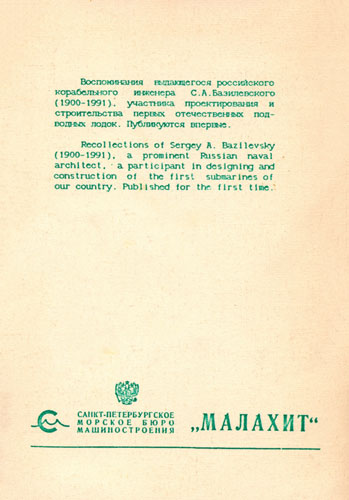 Воспоминания выдающегося российского корабельного инженера С. А. Базилевского ( 1900-1991), участника проектирования и строительства первых отечественных подводных лодок.