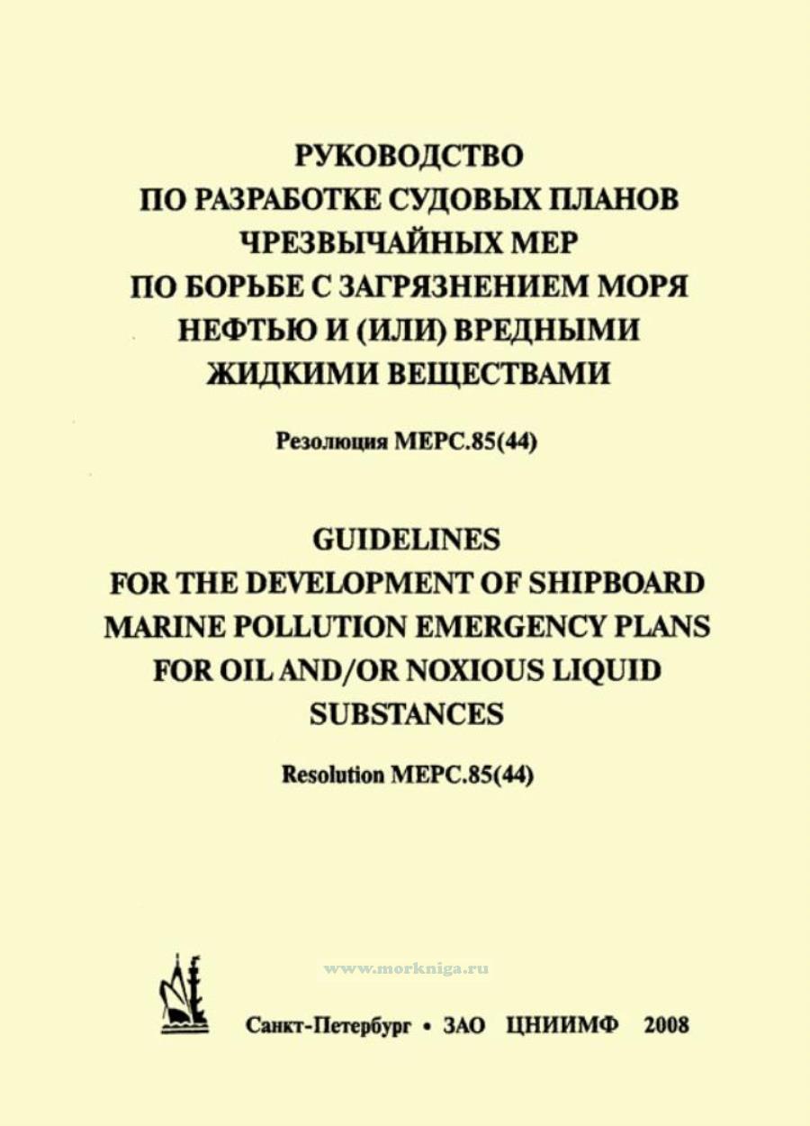 Брошюра содержит русский и английский тексты Руководства по разработке судовых планов чрезвычайных мер по борьбе с загрязнением моря нефтью и (или) вредными жидкими веществами, принятого в марте 2000 г. Комитетом по защите морской среды ИМО на своей 44 сессии Резолюцией МЕРС.85(44). Данное Руководство разработано с тем, чтобы его можно было использовать при разработке судовых планов по борьбе с загрязнением моря только нефтью или только вредными жидкими веществами, а также при разработке объединенных судовых планов чрезвычайных мер по борьбе с загрязнением моря нефтью и вредными жидкими веществами.