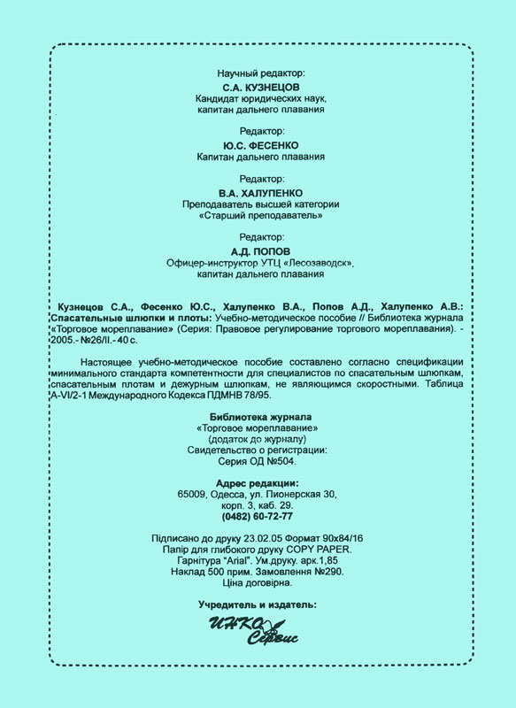 Настоящее учебно-методическое пособие составлено согласно спецификации минимального стандарта компетентности для специалистов по спасательным шлюпкам, спасательным плотам и дежурным шлюпкам, не являющимся коростными. Таблица III/1/2-1 Международного Кодекса ПДМНВ 78/95.